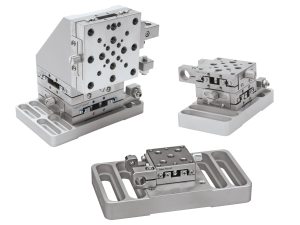 Linear translation stages are designed to constrain motion to an ideal straight line and can be combined to create xy, xz or xyz multi-axis motion configurations. We combines our precision linear adjustment screws and micrometer actuators with advanced bearing configurations and precision machined surfaces to create the manual linear stages required by top researchers and OEM suppliers. Careful consideration is given to anything that can contribute to deviations from ideal linear motion. This includes stage material stiffness, thermal expansion, thermal conductivity, machining tolerances, bearing or flexure design, and linear actuator choice.